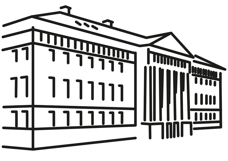 תמונה של אוניברסיטה בשחור לבן להדפסה בחינם. דף עבודה לצביעה של אוניברסיטה להורדה או שמירה במחשב.