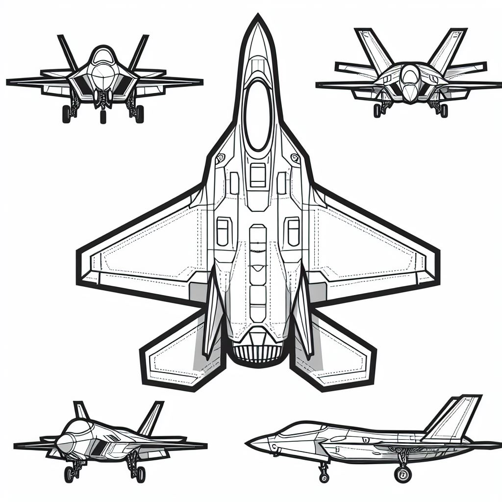 ציור של מטוס קרב מהצדדים לצביעה, איור של מטוס קרב מהצדדים להדפסה לצביעה לילדים