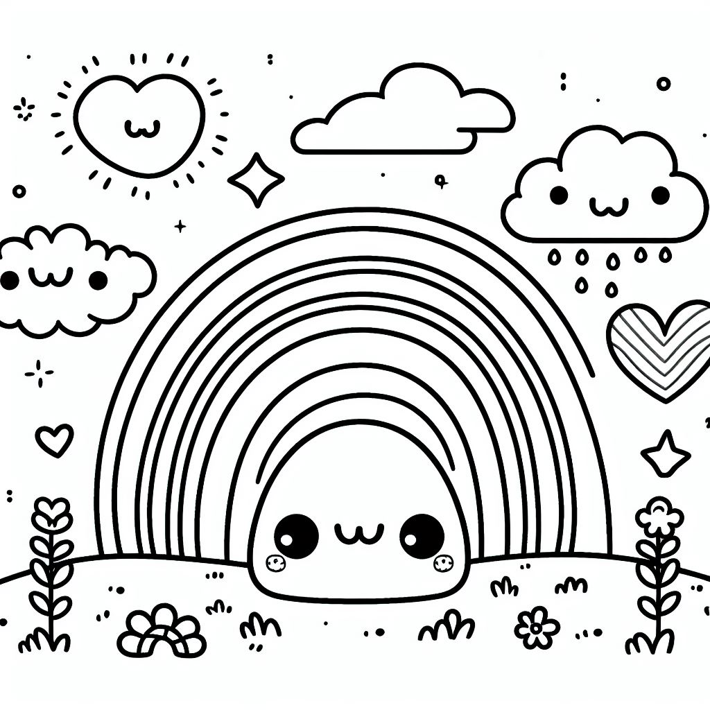 ציור של קשת בענן לצביעה, איור של קשת בענן להדפסה לצביעה לילדים