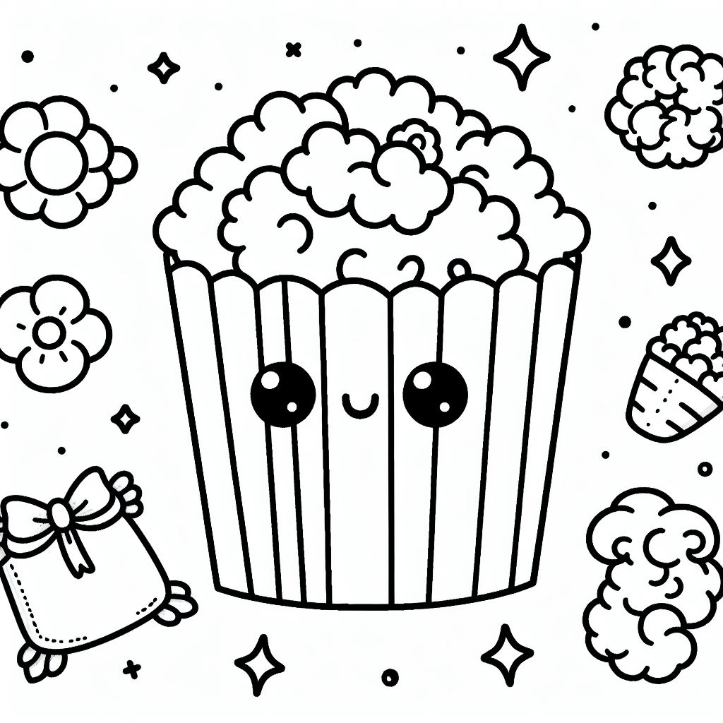 דף צביעה תמונה של קופסת פופקורן חמודה לצביעה בחינם להדפסה או צביעה אונליין