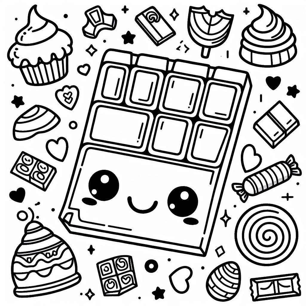 דף צביעה של שוקולדים - דף צביעה של שוקולדים להדפסה, ציור של שוקולדים לצביעה בחינם