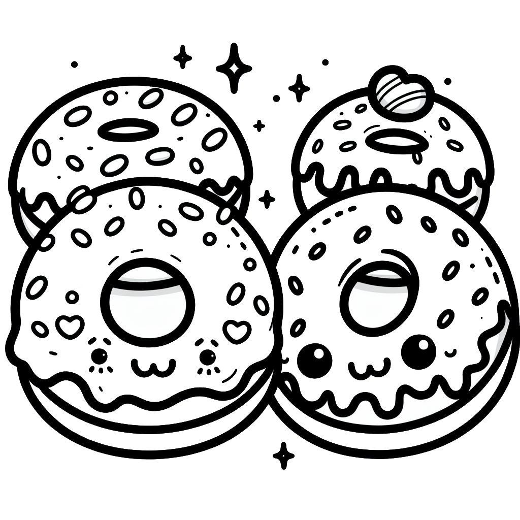 דף צביעה תמונה של דונאטס להדפסה בחינם להדפסה או צביעה אונליין