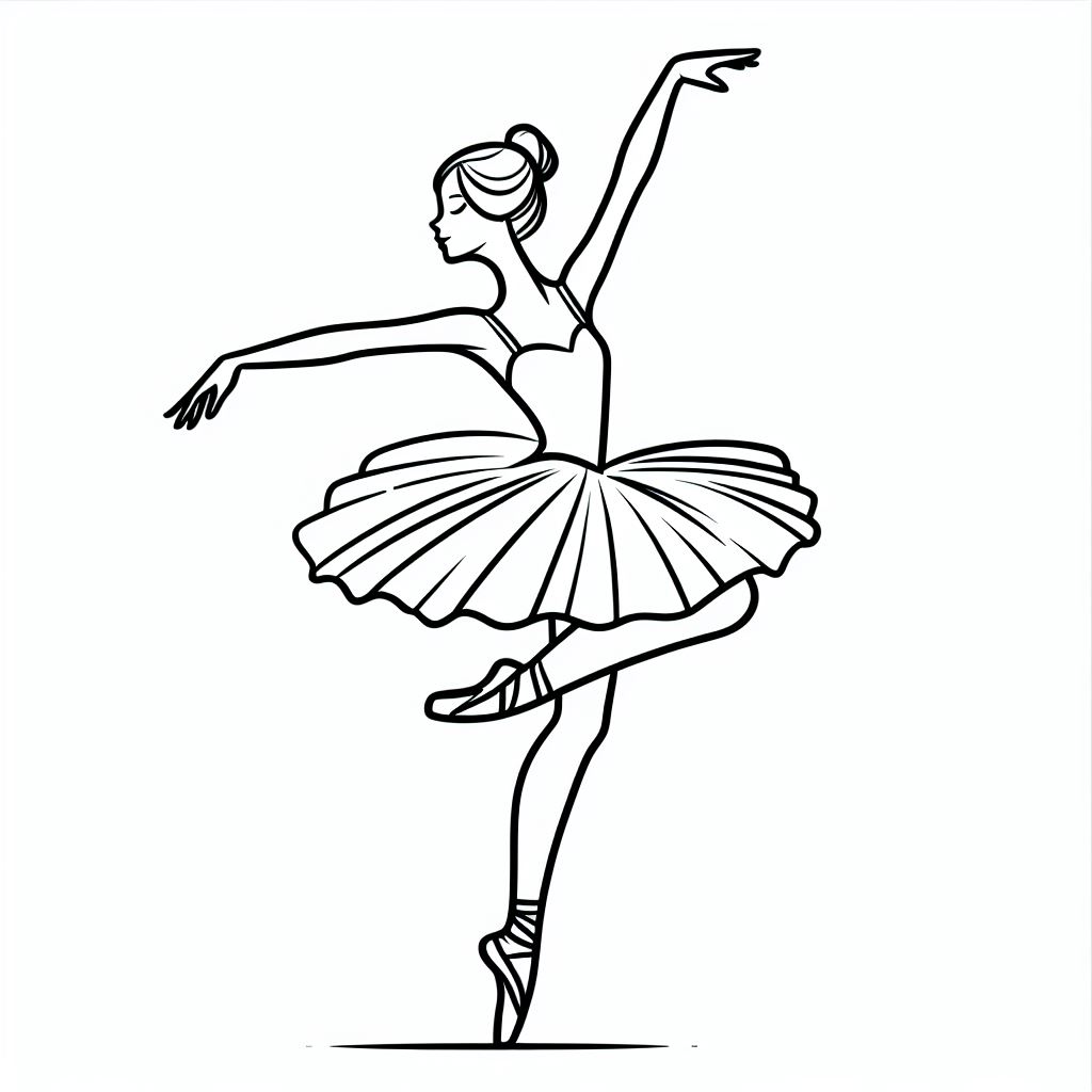 ציור של רקדנית בלט לצביעה, איור של רקדנית בלט להדפסה לצביעה לילדים