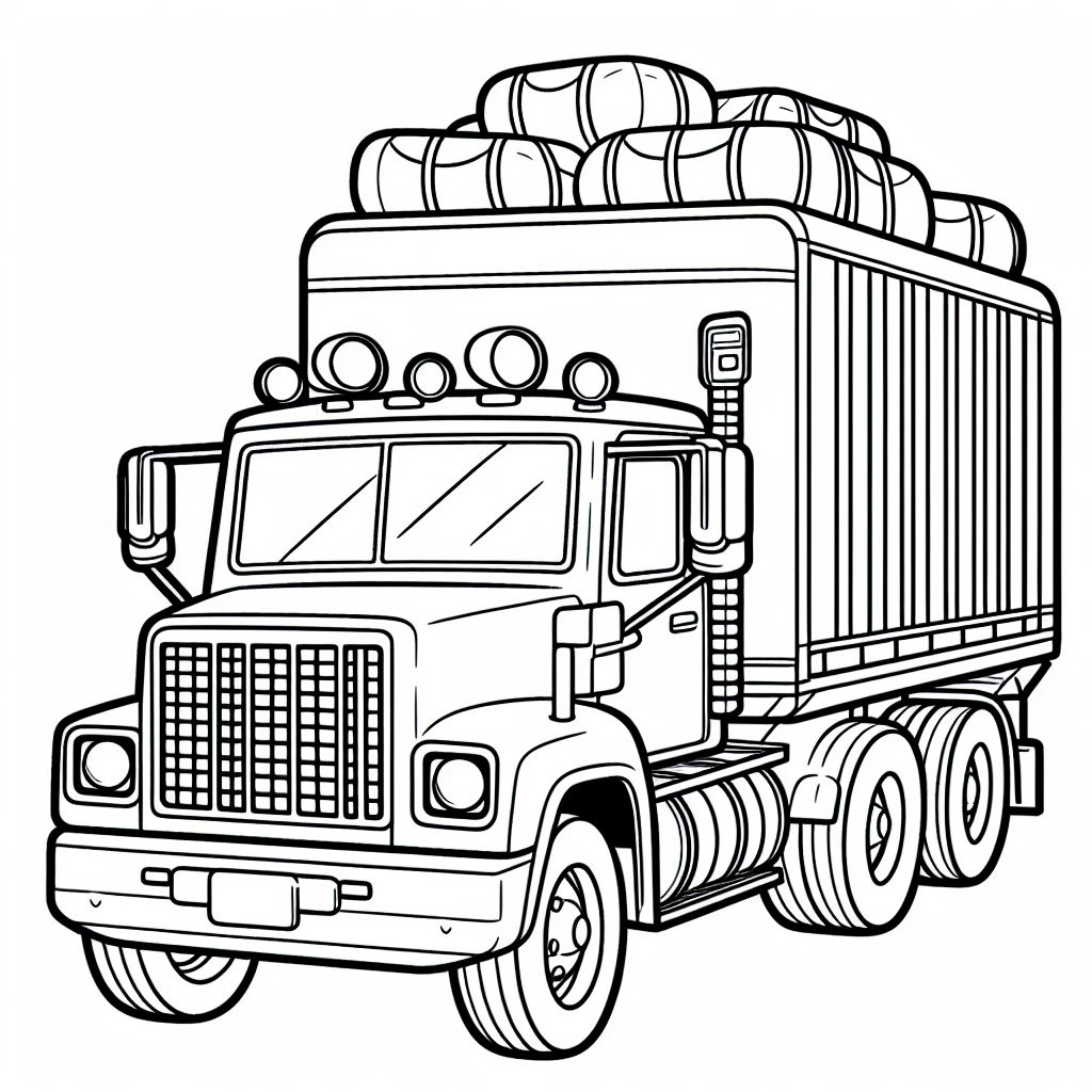 דף צביעה של משאית - דף צביעה של משאית להדפסה, ציור של משאית לצביעה בחינם