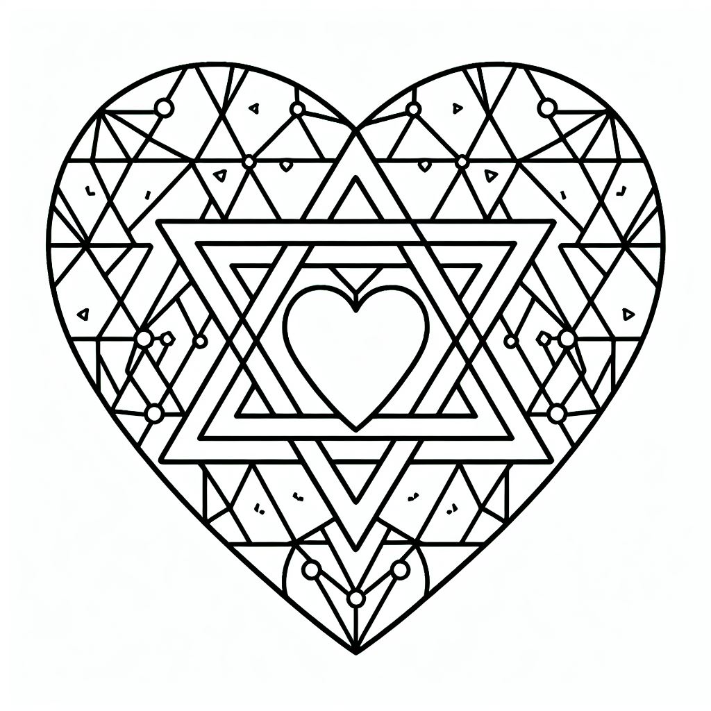 דף צביעה תמונה של לב מגן דוד לצביעה בחינם להדפסה או צביעה אונליין