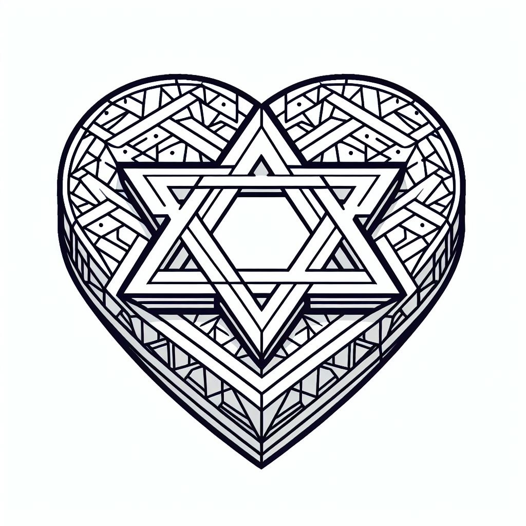דף צביעה של לב תלת ממדי מגן דוד להדפסה בחינם