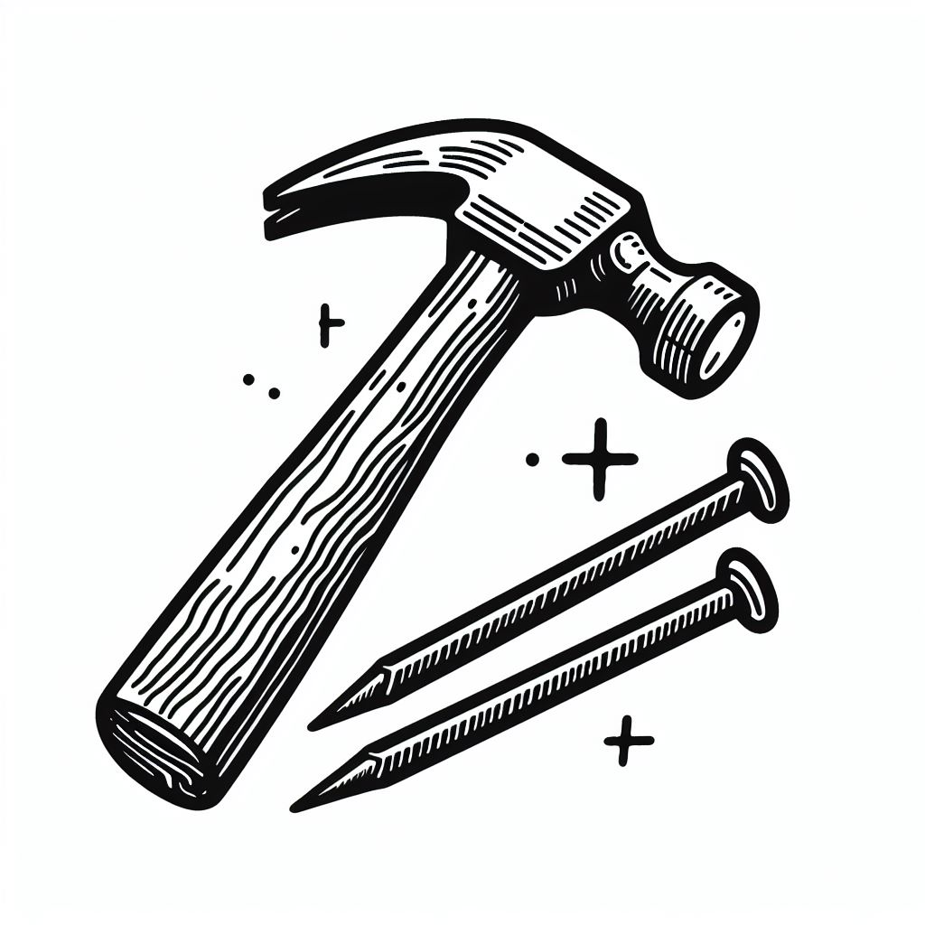 דף צביעה של פטיש ומסמר - דף צביעה של פטיש ומסמר להדפסה, ציור של פטיש ומסמר לצביעה בחינם