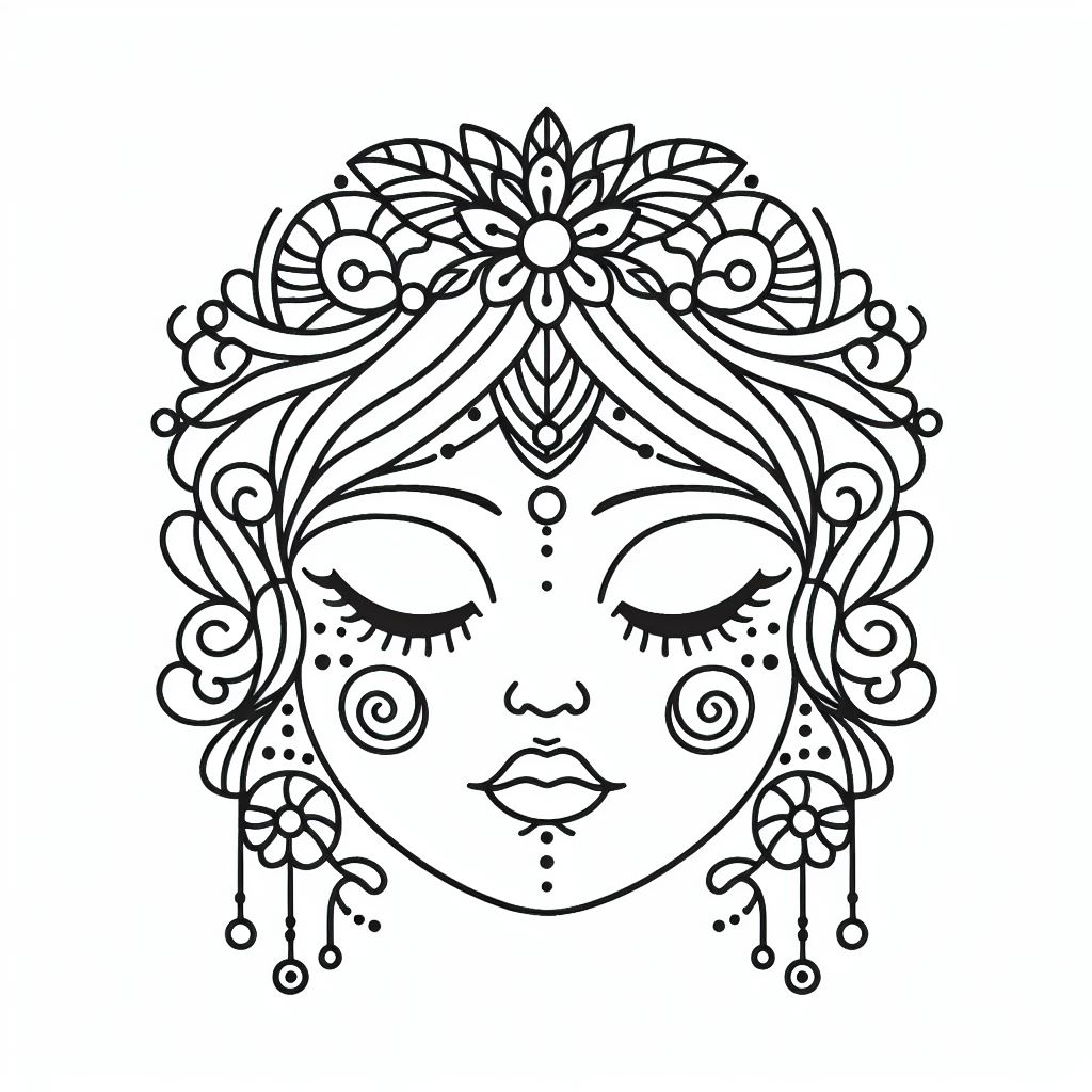 דף ציור של פנים לצביעה , ציור של פנים להדפסה לצביעה, מתאים לדף בגודל A4 להדפסה בחינם