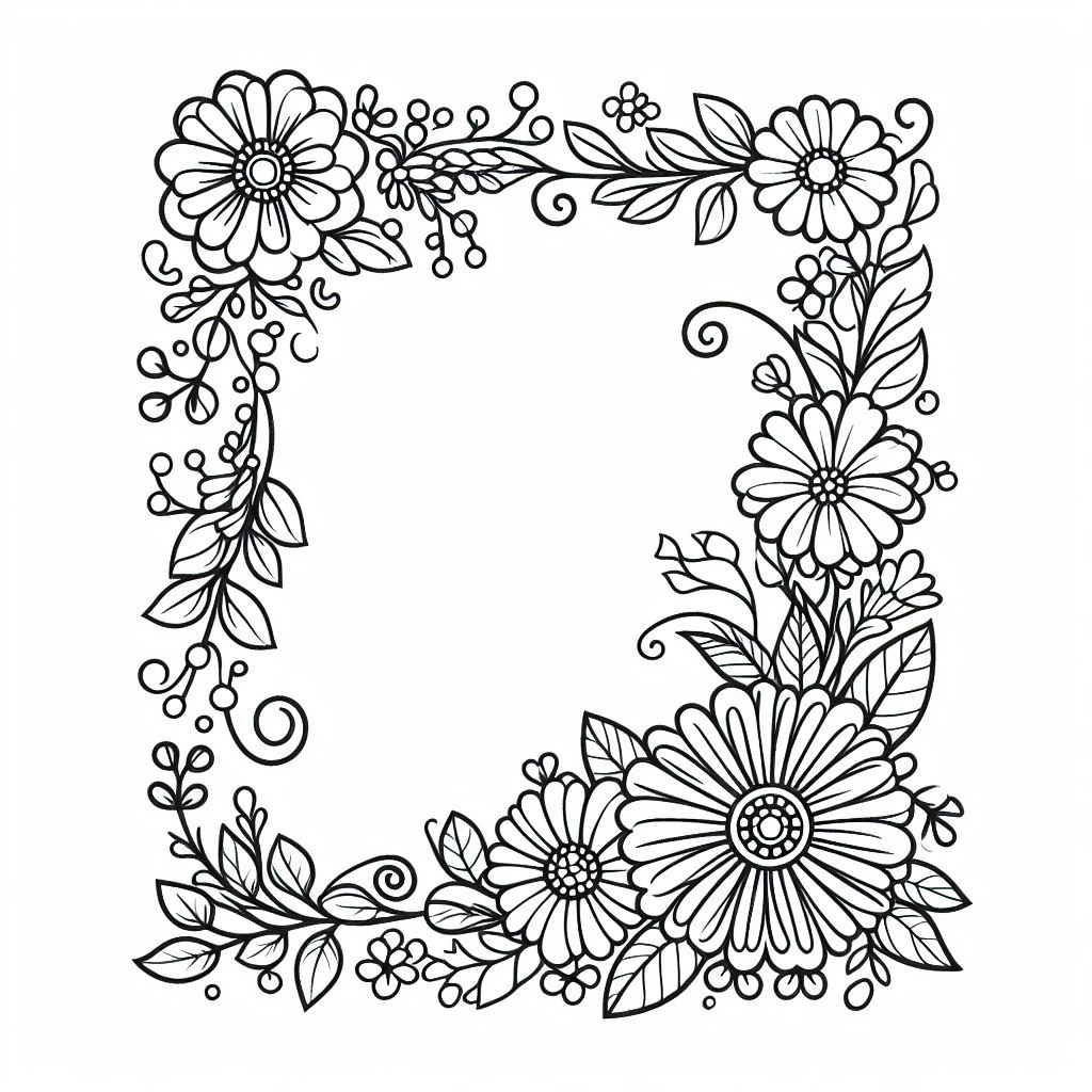 ציור של מסגרת פרחים לצביעה, איור של מסגרת פרחים להדפסה לצביעה לילדים