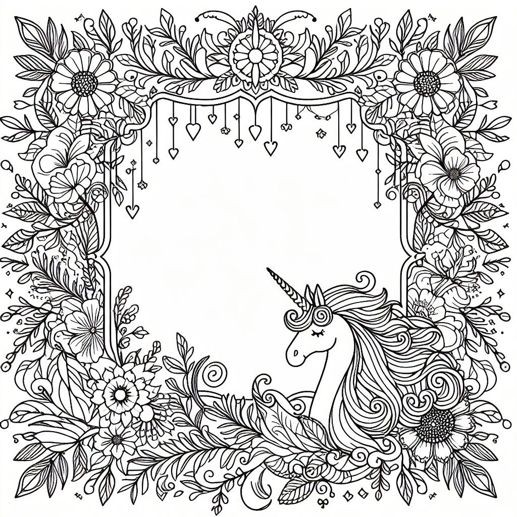 דף צביעה של מסגרת עם חד קרן להדפסה או להורדה בחינם, למחשב או לטלפון (אפשר להדפיס גם מהטלפון)