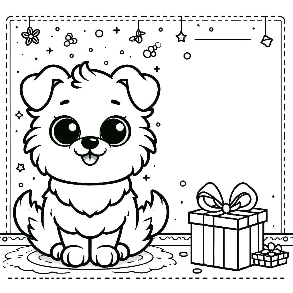דף צביעה תמונה של כרטיס ברכה כלב ומתנה לצביעה בחינם להדפסה או צביעה אונליין