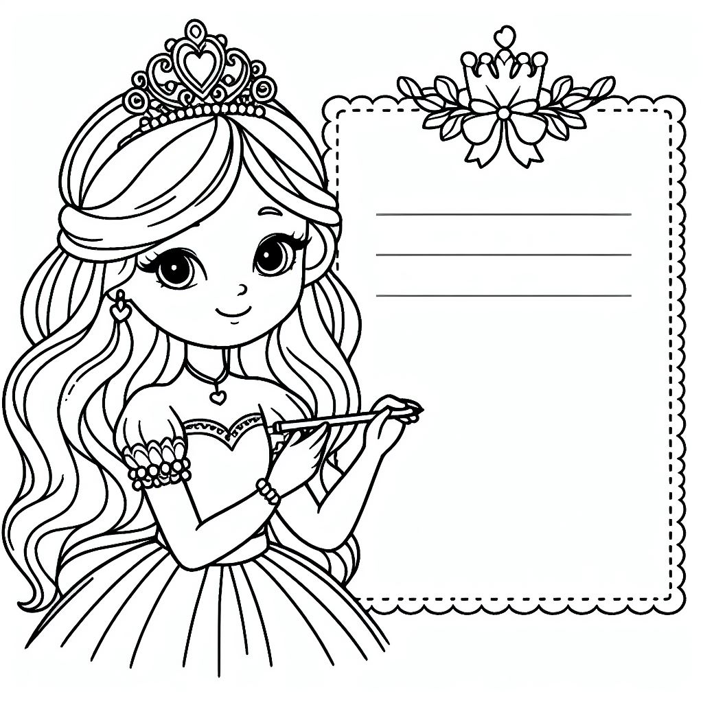 דף צביעה תמונה של כרטיס ברכה נסיכה כותבת לצביעה בחינם להדפסה או צביעה אונליין