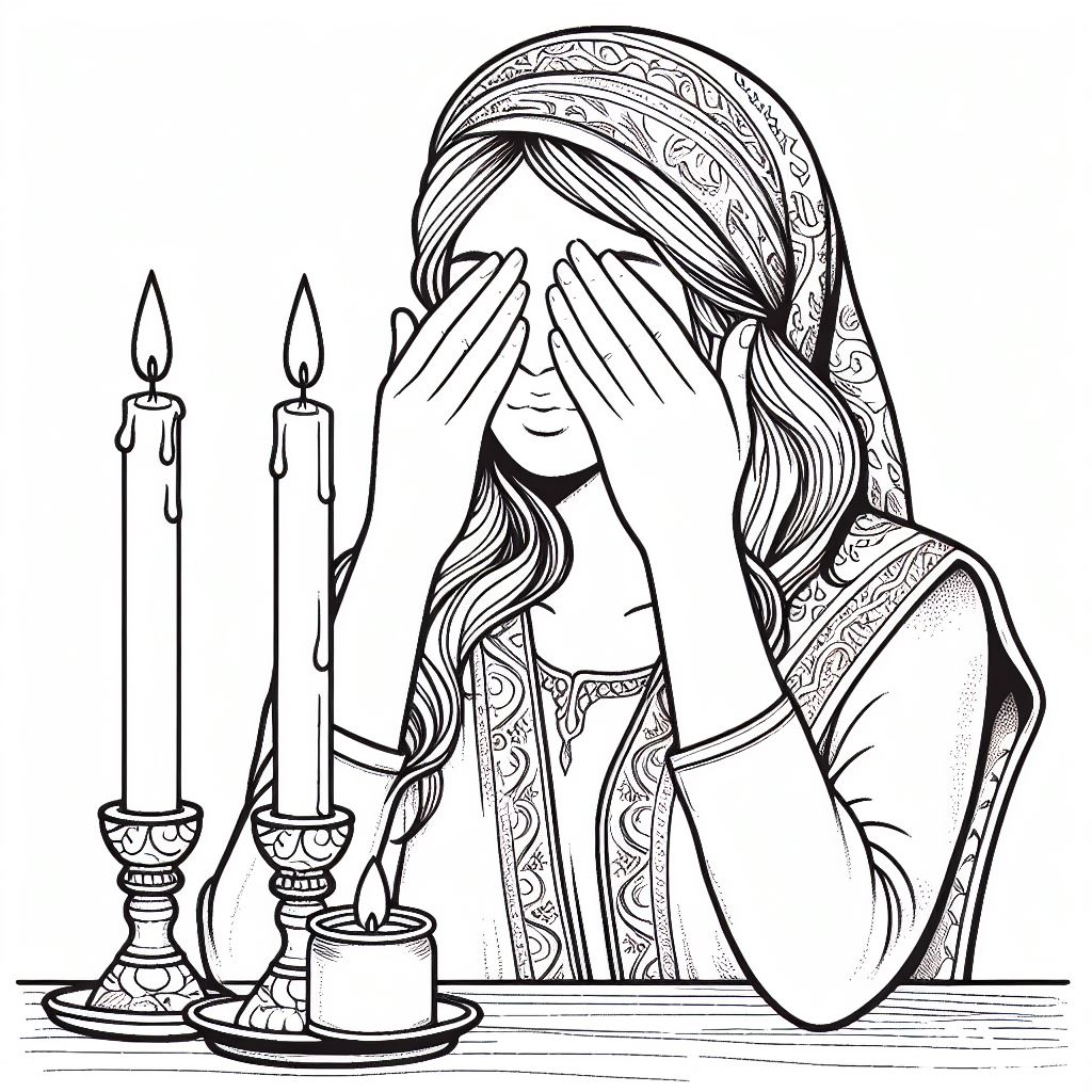 דף צביעה תמונה של אמא מדליקה נרות שבת לצביעה בחינם להדפסה או צביעה אונליין