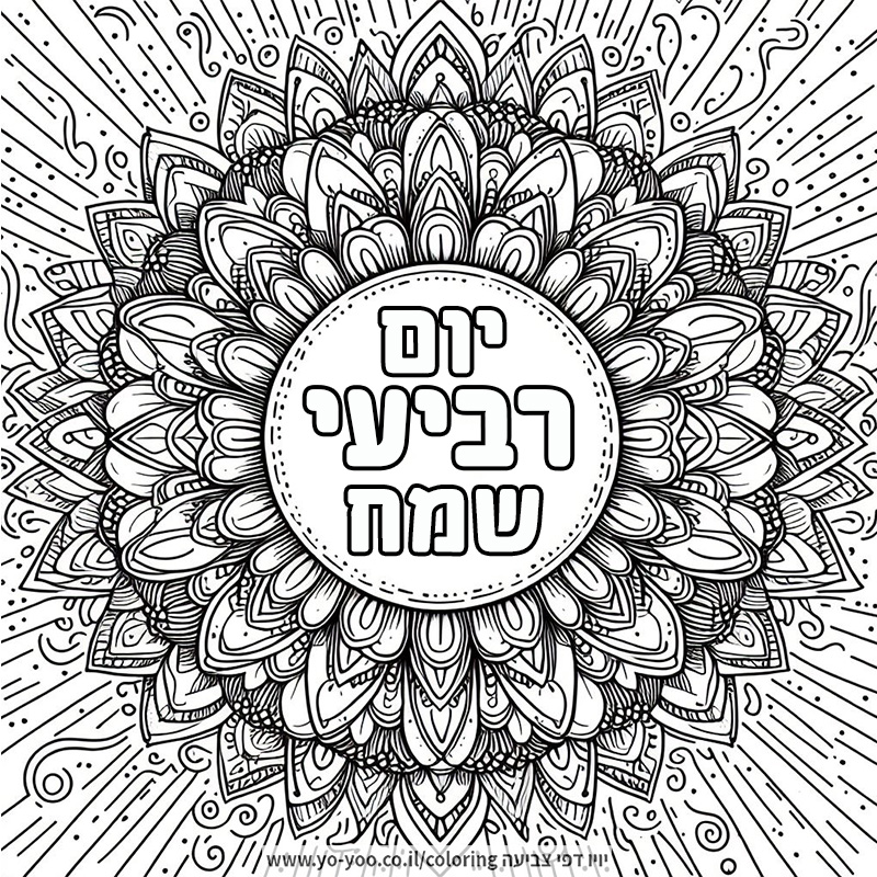 ציור של מנדלה יום רביעי לצביעה, איור של מנדלה יום רביעי להדפסה לצביעה לילדים