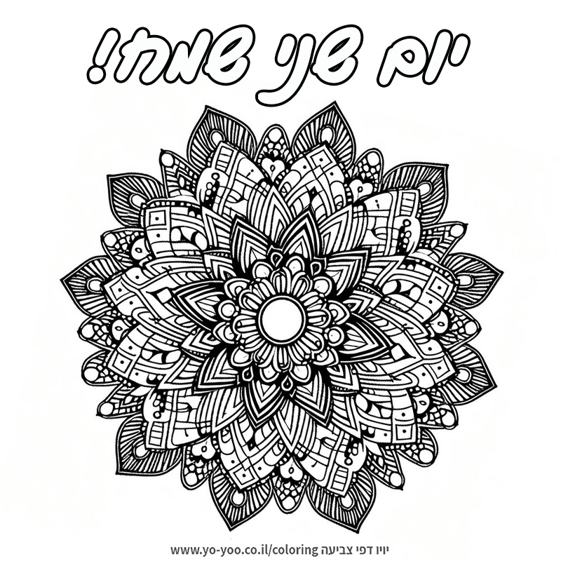 ציור של מנדלה יום שני לצביעה, איור של מנדלה יום שני להדפסה לצביעה לילדים