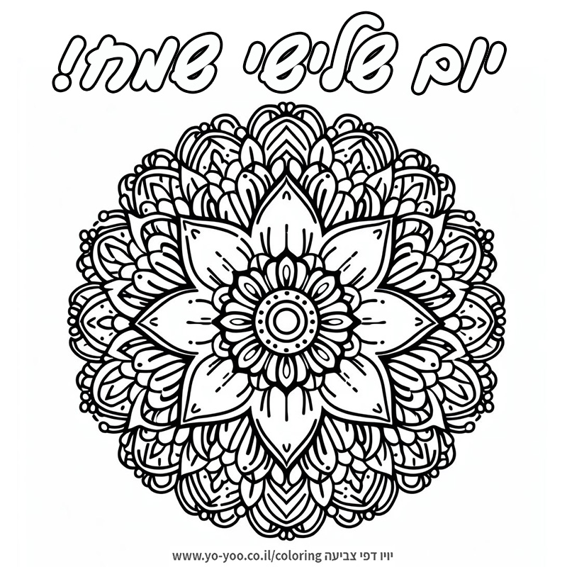 ציור של מנדלה ליום שלישי לצביעה, איור של מנדלה ליום שלישי להדפסה לצביעה לילדים