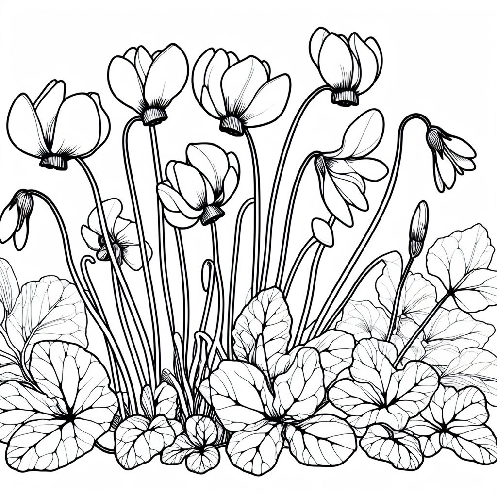 דף צביעה של רקפות - דף צביעה של רקפות להדפסה, ציור של רקפות לצביעה בחינם