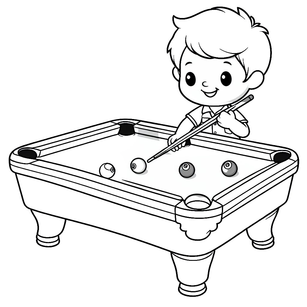 דף צביעה תמונה של ילד משחק ביליארד לצביעה בחינם להדפסה או צביעה אונליין