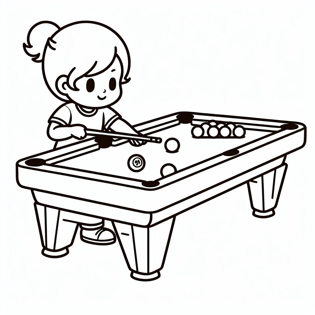 דף צביעה תמונה של ילדה משחקת ביליארד לצביעה בחינם להדפסה או צביעה אונליין