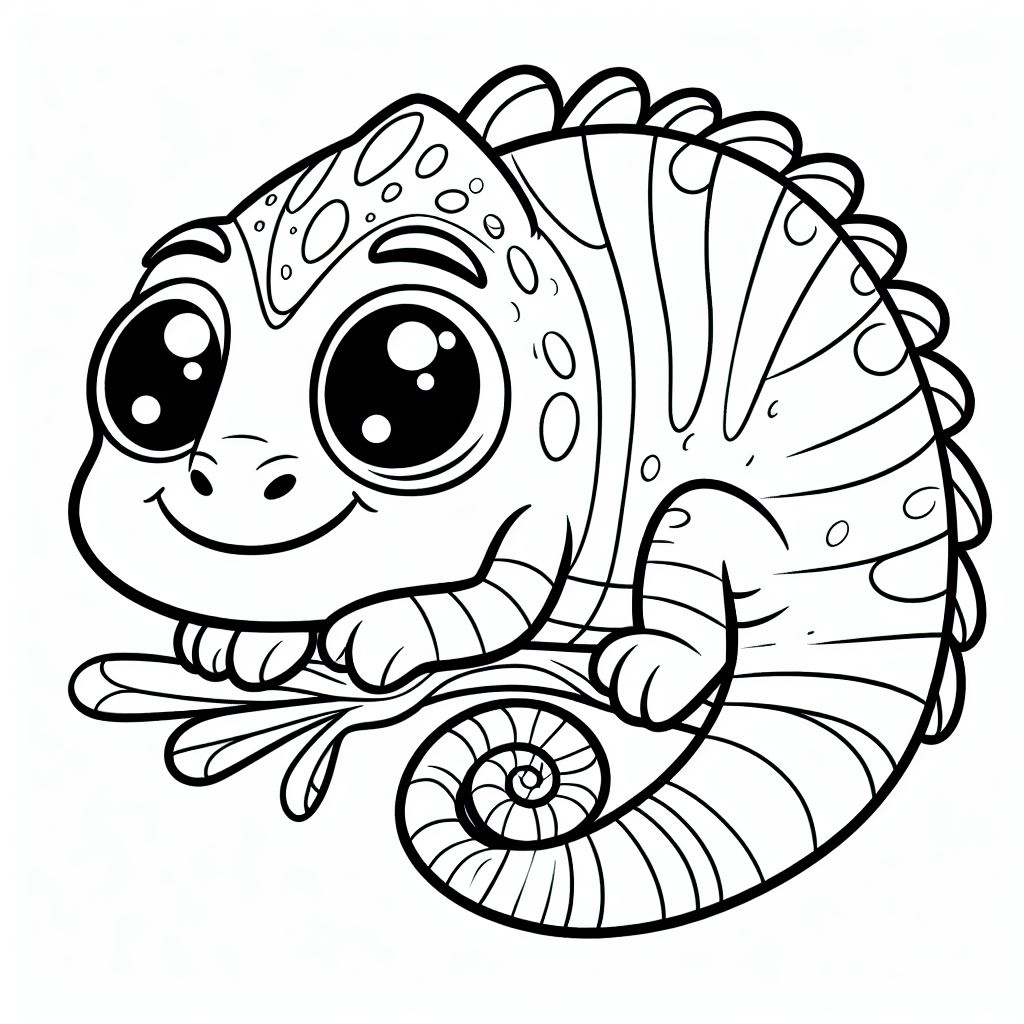 דף צביעה של הזיקית - דף צביעה של הזיקית להדפסה, ציור של הזיקית לצביעה בחינם