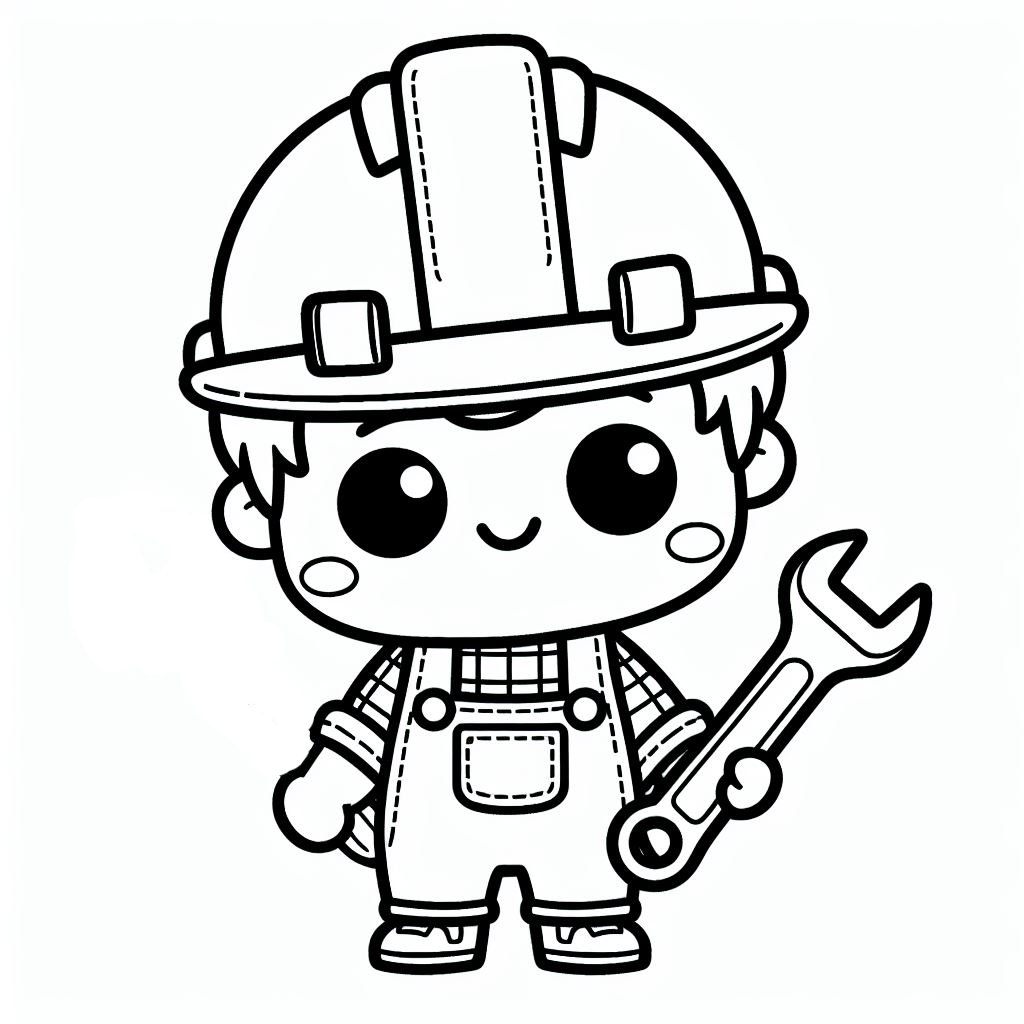 ציור של בנאי לצביעה, איור של בנאי להדפסה לצביעה לילדים