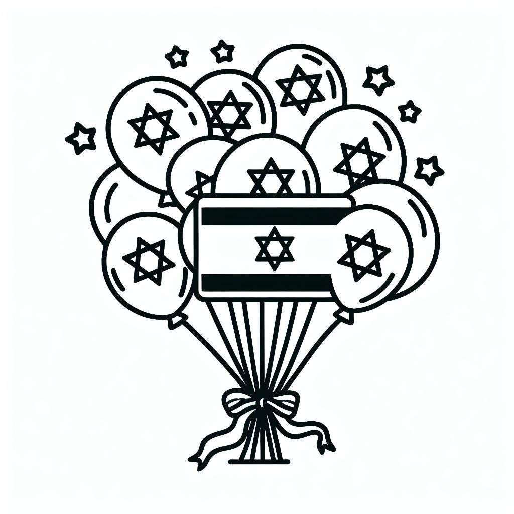 דף צביעה תמונה של בלונים עם דגל ישראל לצביעה בחינם להדפסה או צביעה אונליין
