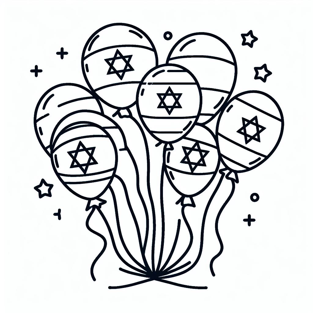 דף צביעה תמונה של בלונים דגל ישראל לצביעה בחינם להדפסה או צביעה אונליין