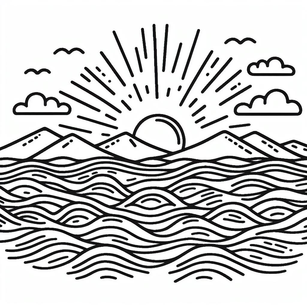 תמונה של ים ציור בשחור לבן להדפסה בחינם. דף עבודה לצביעה של ים ציור להורדה או שמירה במחשב.