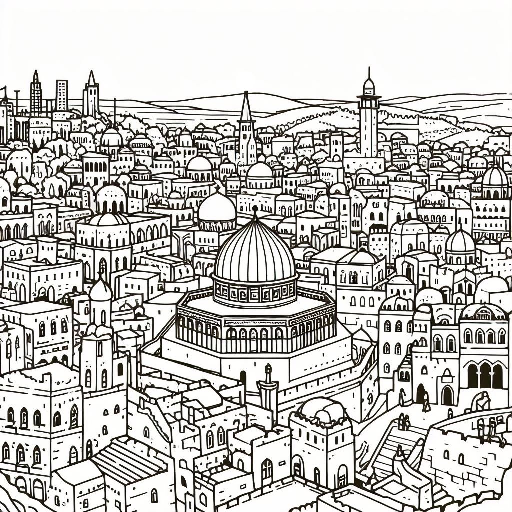 דף צביעה של ירושלים - דף צביעה של ירושלים להדפסה, ציור של ירושלים לצביעה בחינם