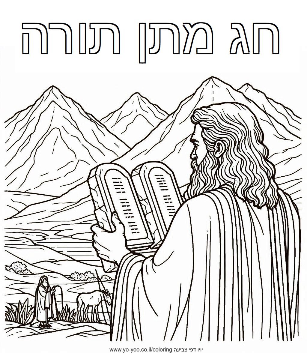 דף צביעה של מתן תורה להדפסה או להורדה בחינם, למחשב או לטלפון (אפשר להדפיס גם מהטלפון)