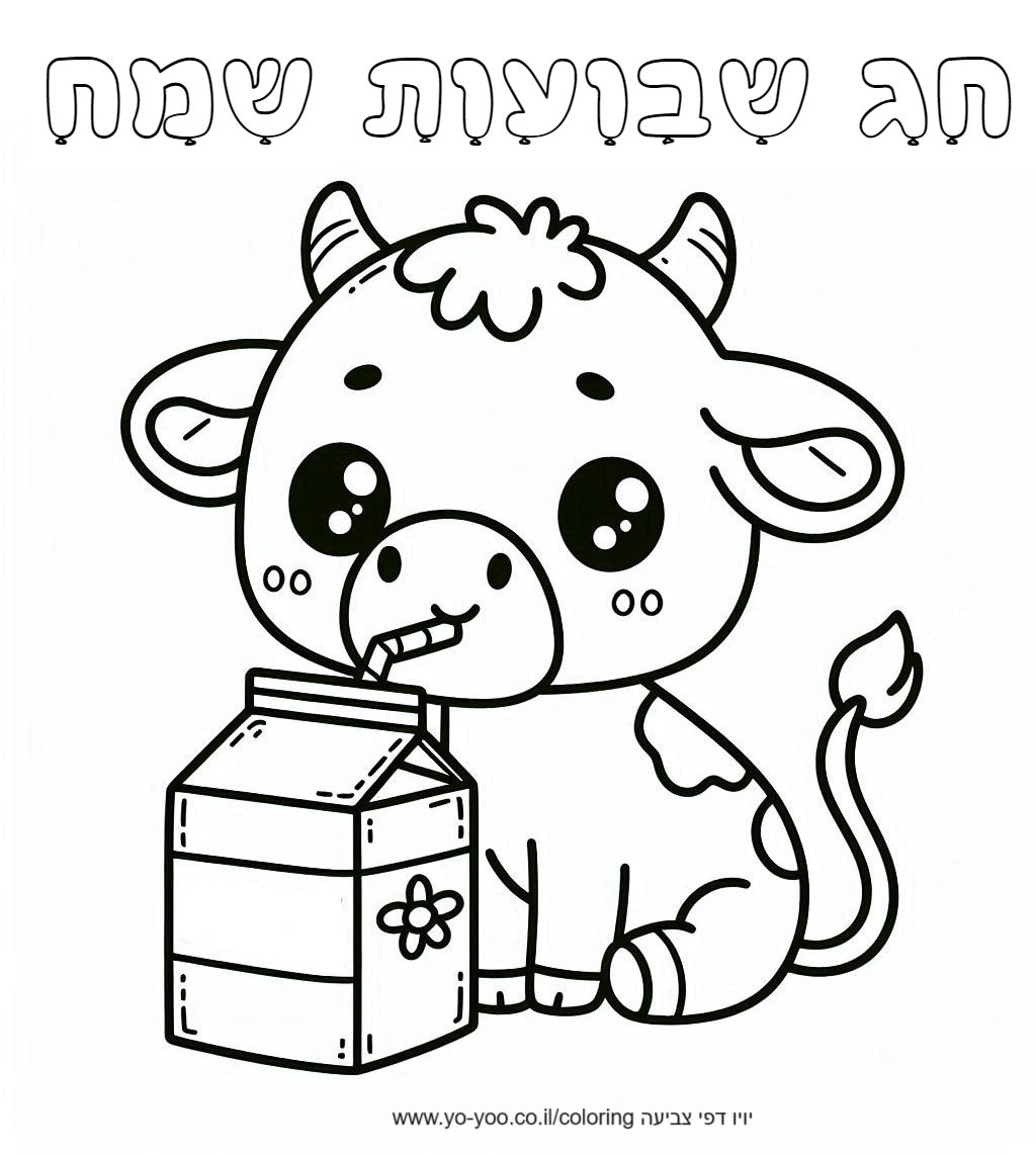 דף צביעה של פרה חמודה חג שבועות להדפסה בחינם