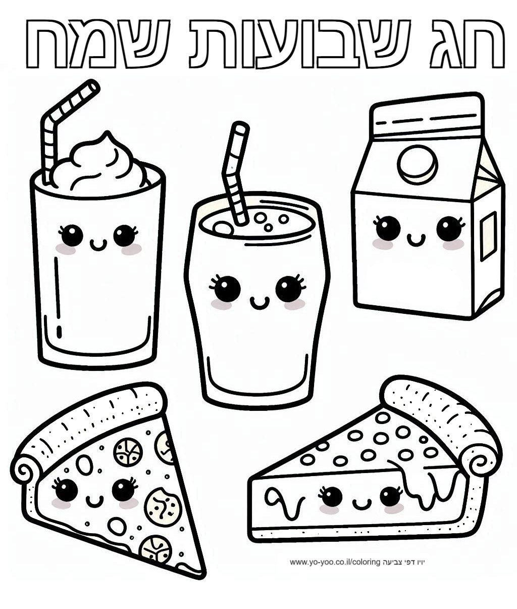דף צביעה של מוצרי חלב לשבועות להדפסה או להורדה בחינם, למחשב או לטלפון (אפשר להדפיס גם מהטלפון)