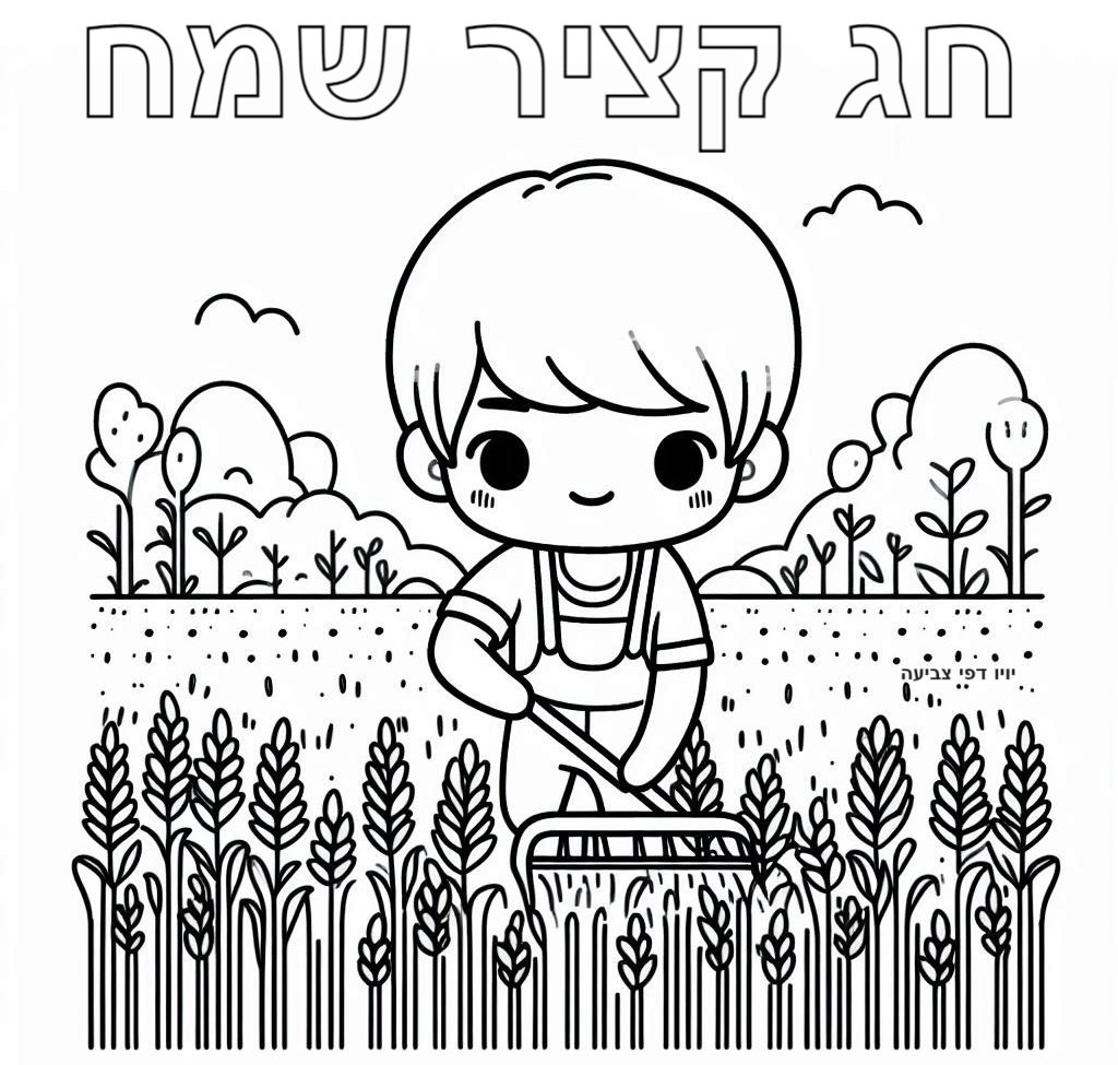 דף חג קציר לצביעה , חג קציר להדפסה לצביעה, מתאים לדף בגודל A4 להדפסה בחינם