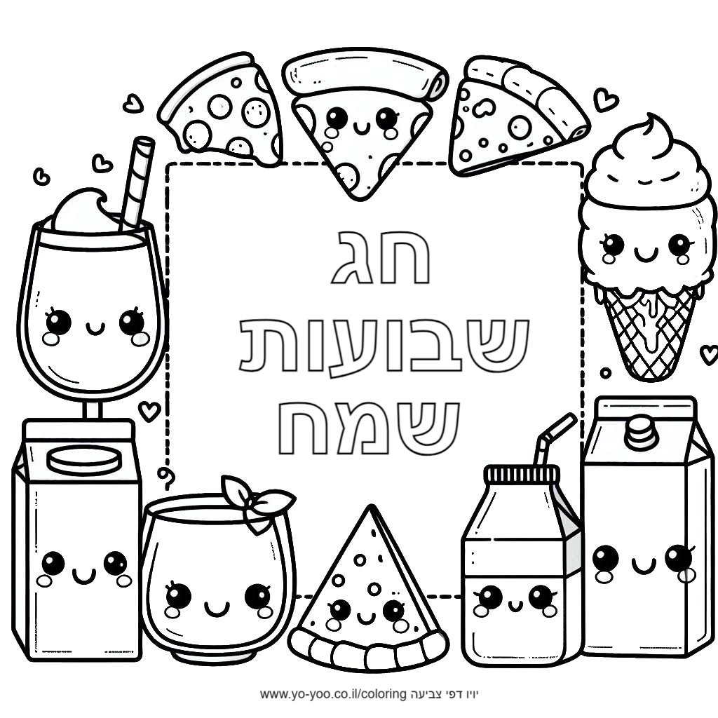דף צביעה של ברכה חמודה לשבועות לילדים להדפסה בחינם