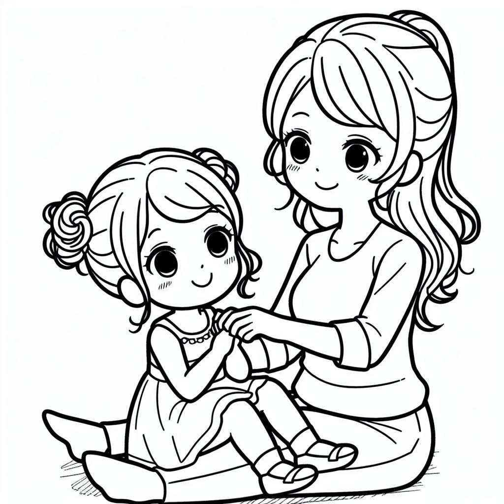 דף צביעה של אמא ובת משחקות להדפסה בחינם