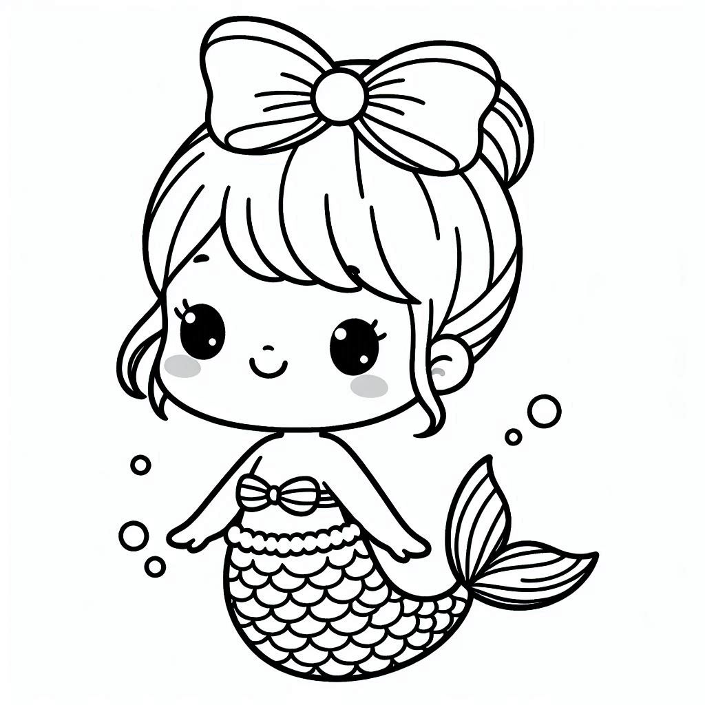 ציור של בת ים תינוקת לצביעה, איור של בת ים תינוקת להדפסה לצביעה לילדים