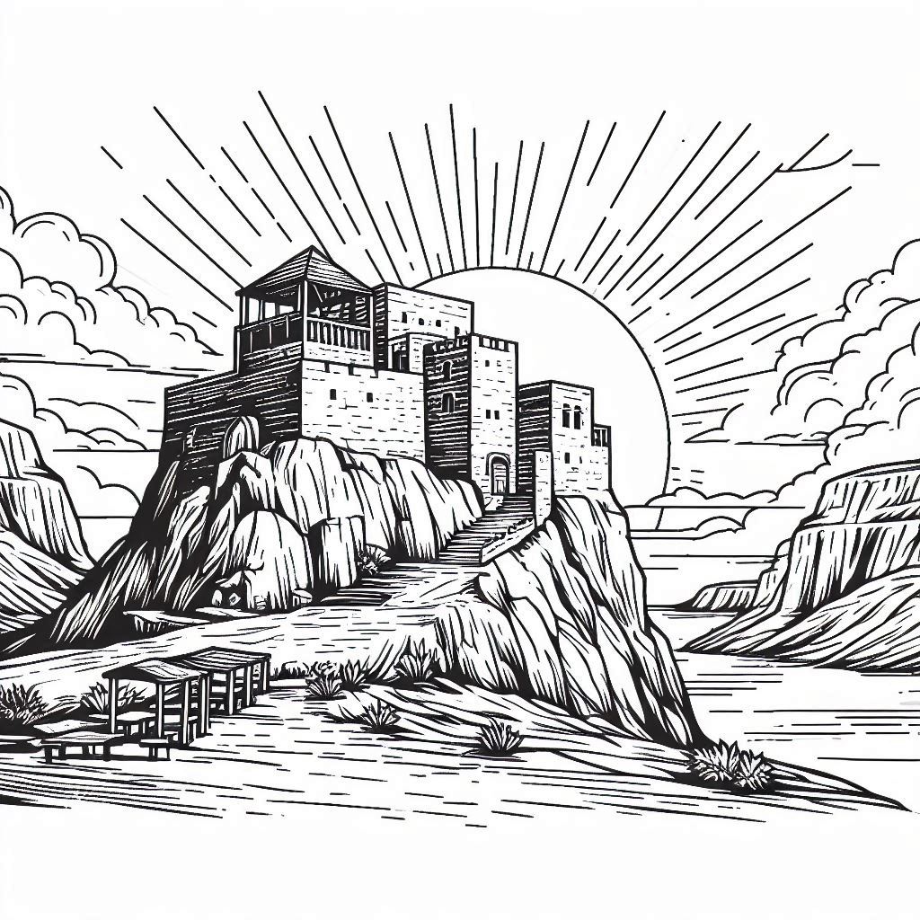 ציור של מצדה לצביעה, איור של מצדה להדפסה לצביעה לילדים