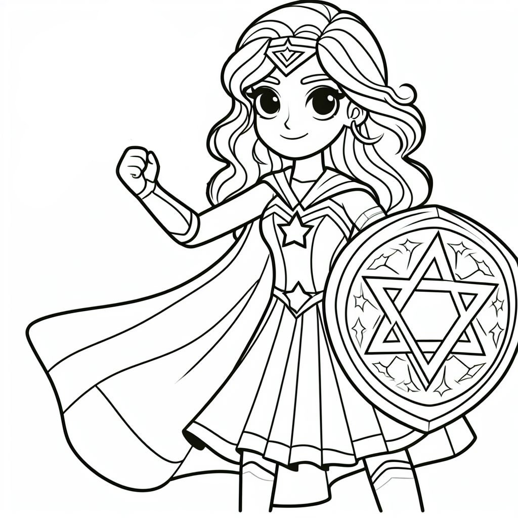 דף צביעה של גיבורת על ישראלית להדפסה בחינם