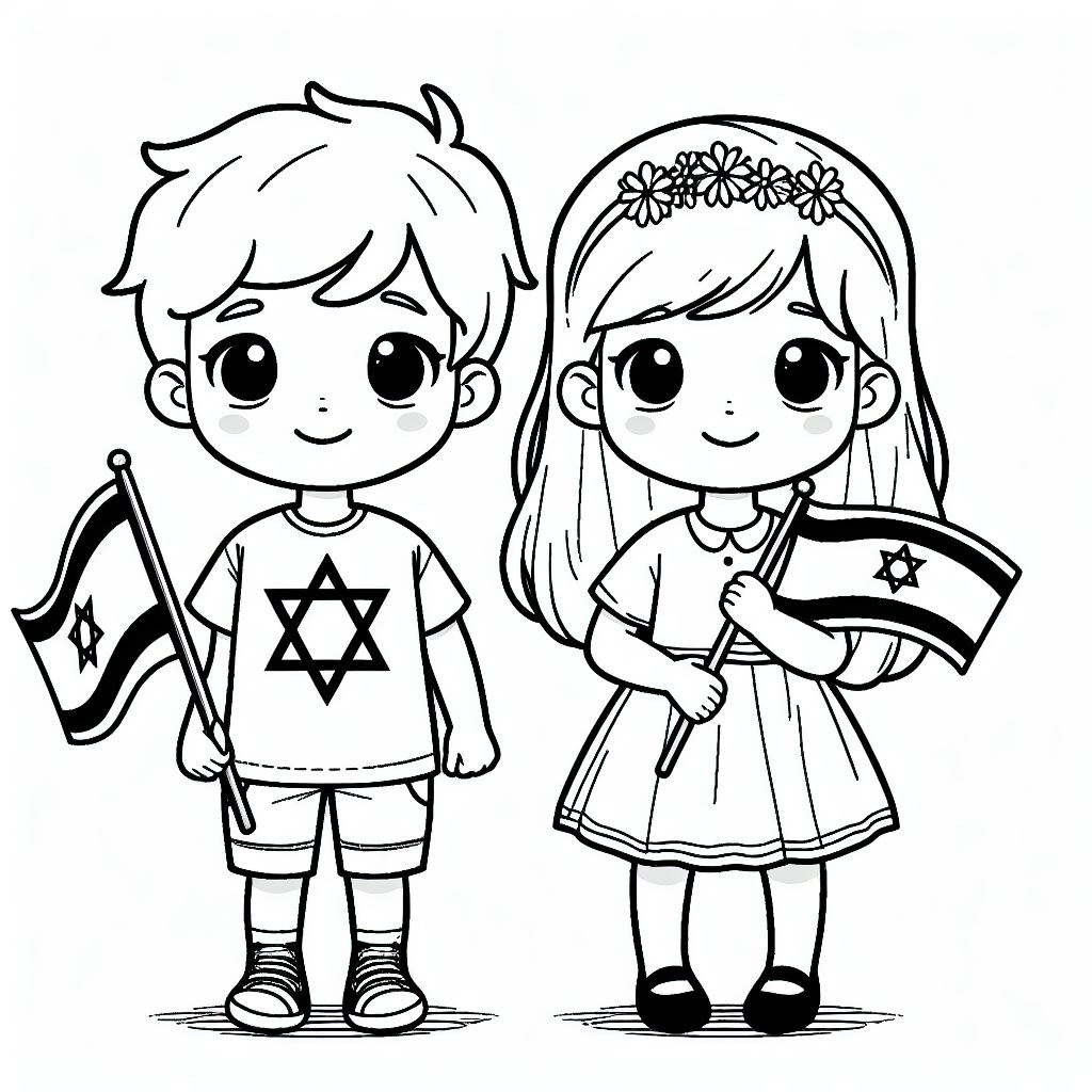 ילדים מחזיקים דגל ישראל לצביעה - דף צביעה של ילדים מחזיקים דגל ישראל להדפסה, ציור של ילדים מחזיקים דגל ישראל לצביעה בחינם. דף צביעה להדפסה או להורדה בחינם ! כנסו והתחילו לצבוע !