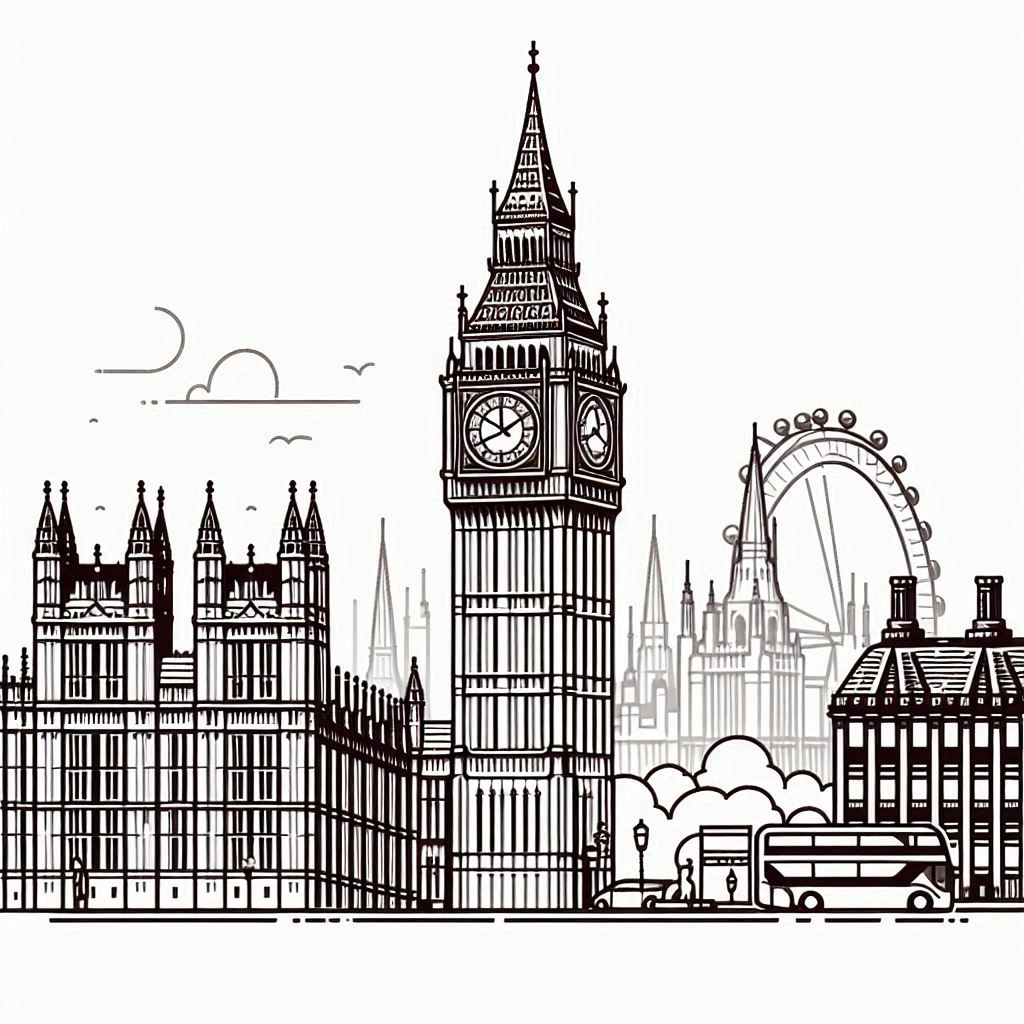 ציור של הביג בן לצביעה, איור של הביג בן להדפסה לצביעה לילדים