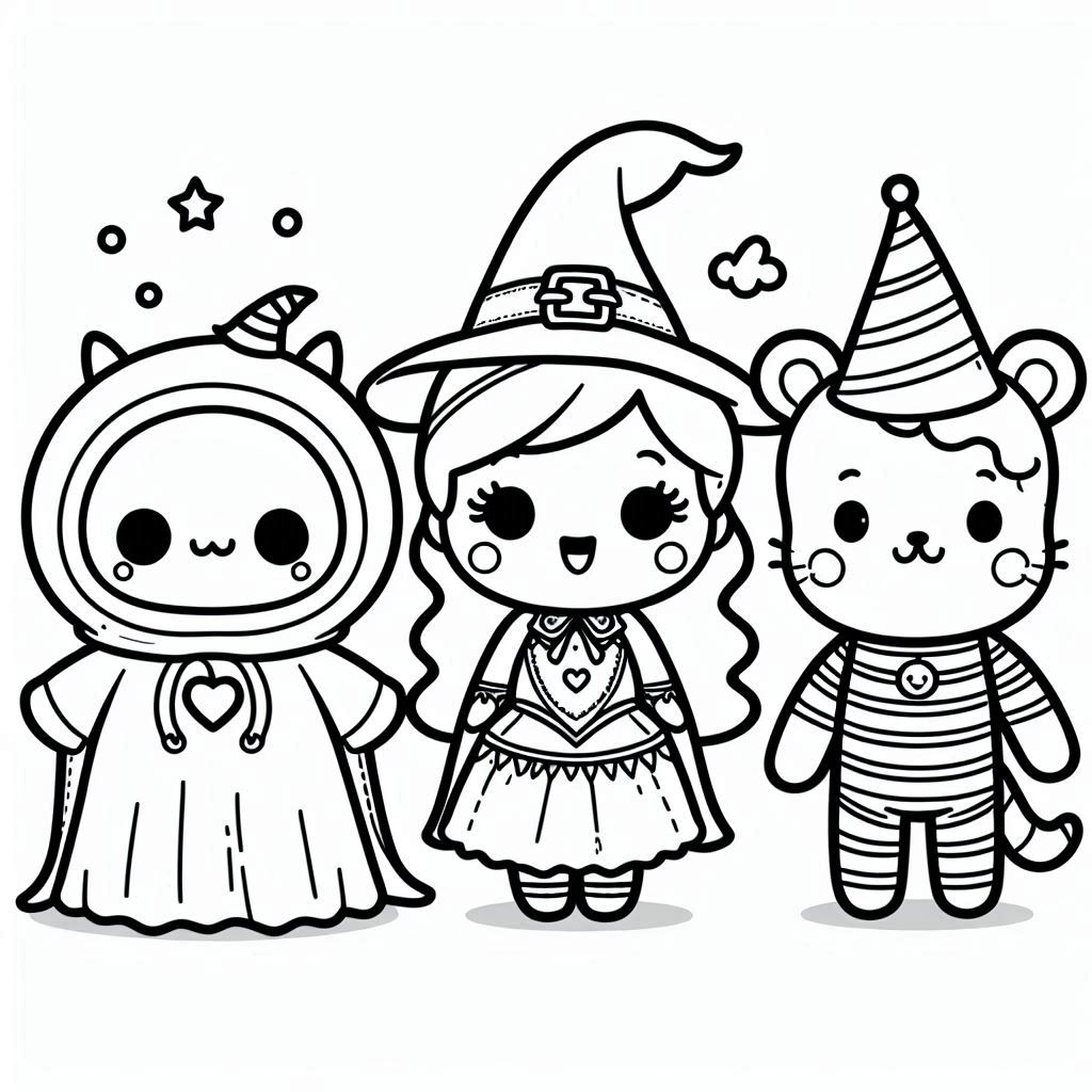 דף צביעה להדפסה או להורדה חינם של מסיבת תחפושות