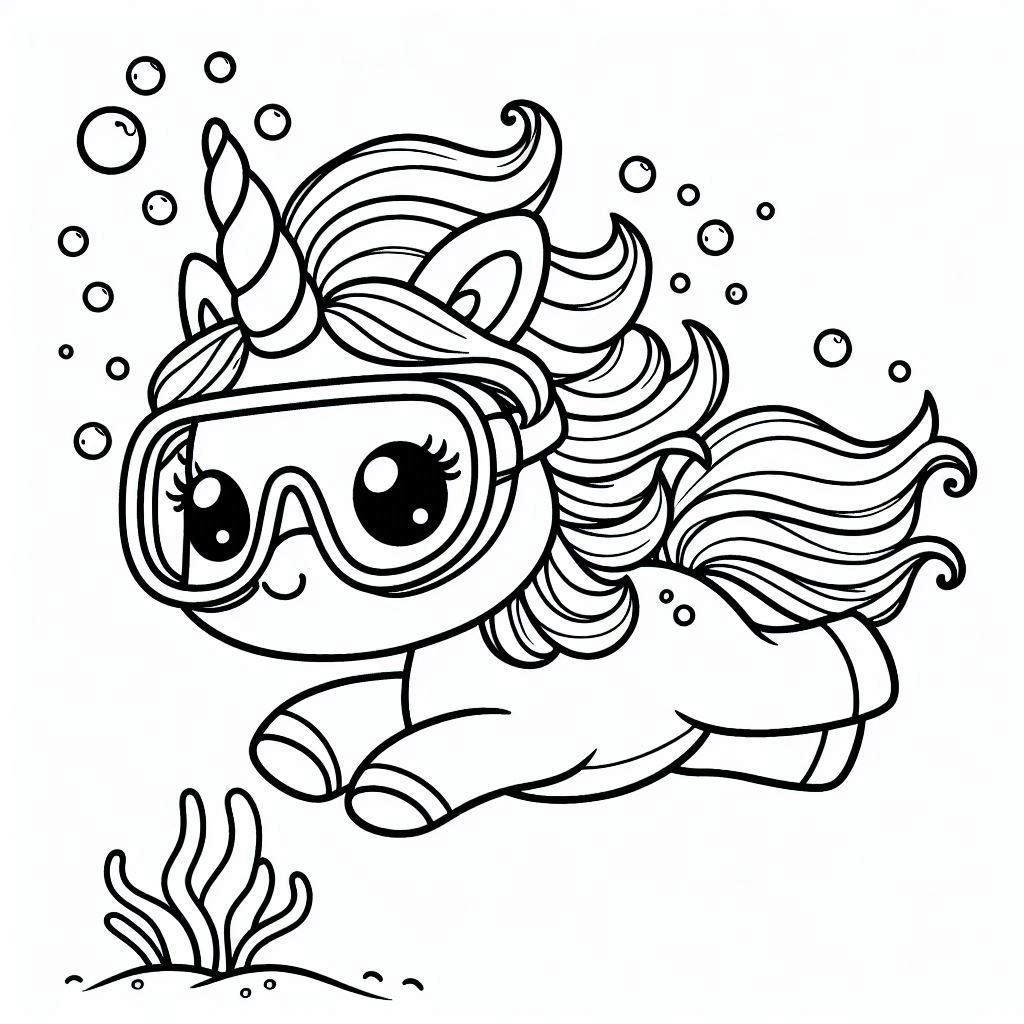 דף צביעה תמונה של חד קרן מתחת למים לצביעה בחינם להדפסה או צביעה אונליין