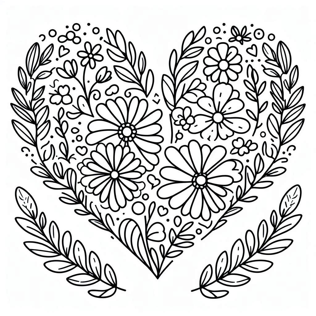 דף צביעה להדפסה או להורדה חינם של לב מפרחים