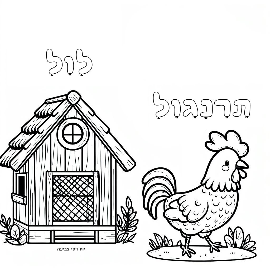 דף צביעה של תרנגול ולול להדפסה או להורדה בחינם, למחשב או לטלפון (אפשר להדפיס גם מהטלפון)