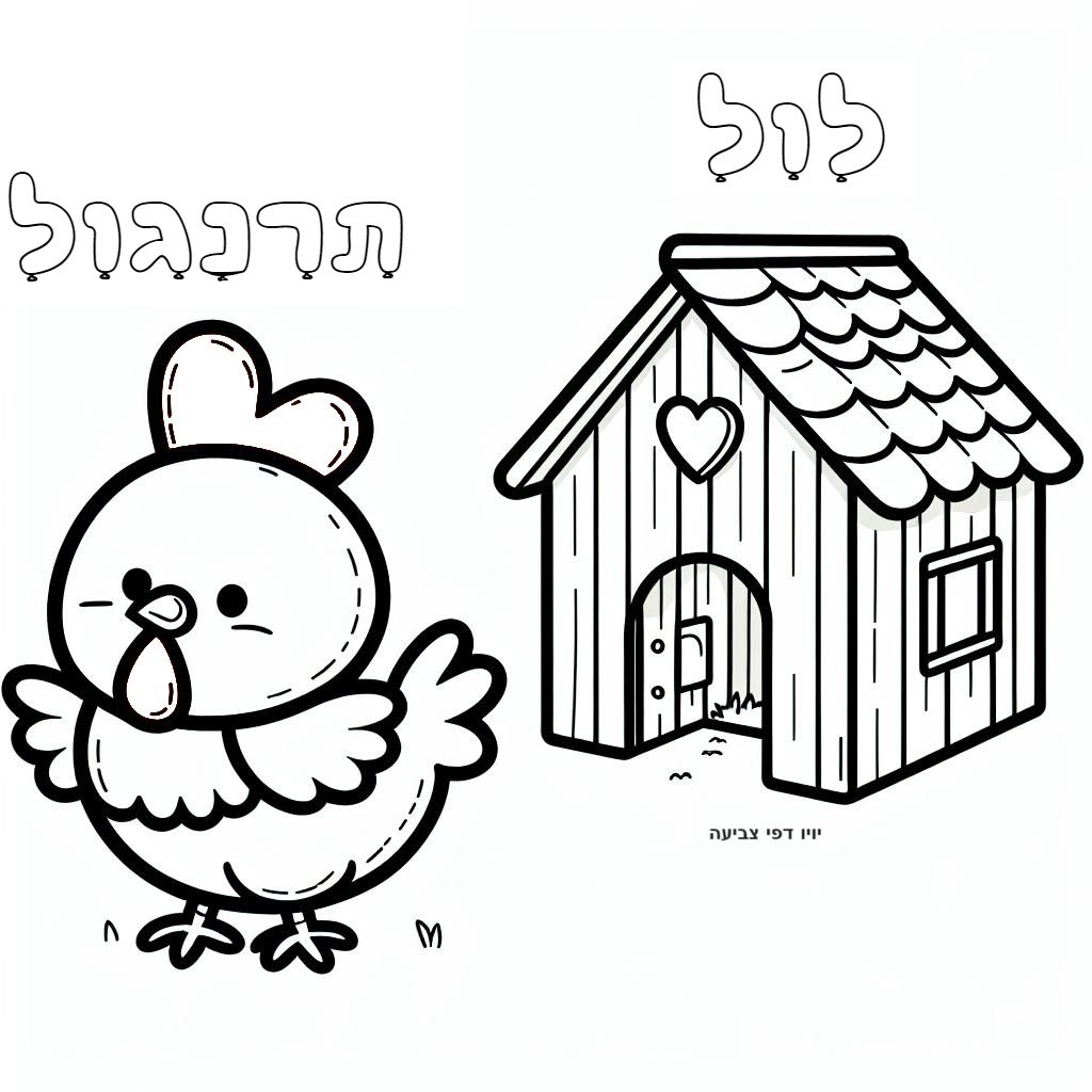 דף צביעה של תרנגולת ולול להדפסה או להורדה בחינם, למחשב או לטלפון (אפשר להדפיס גם מהטלפון)