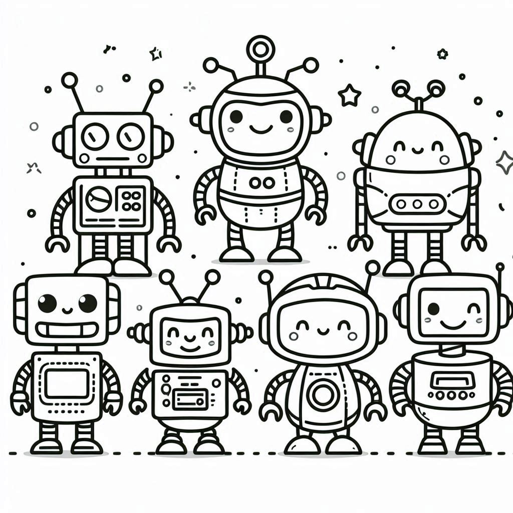 דף רובוטים חמודים לצביעה , רובוטים חמודים להדפסה לצביעה, מתאים לדף בגודל A4 להדפסה בחינם