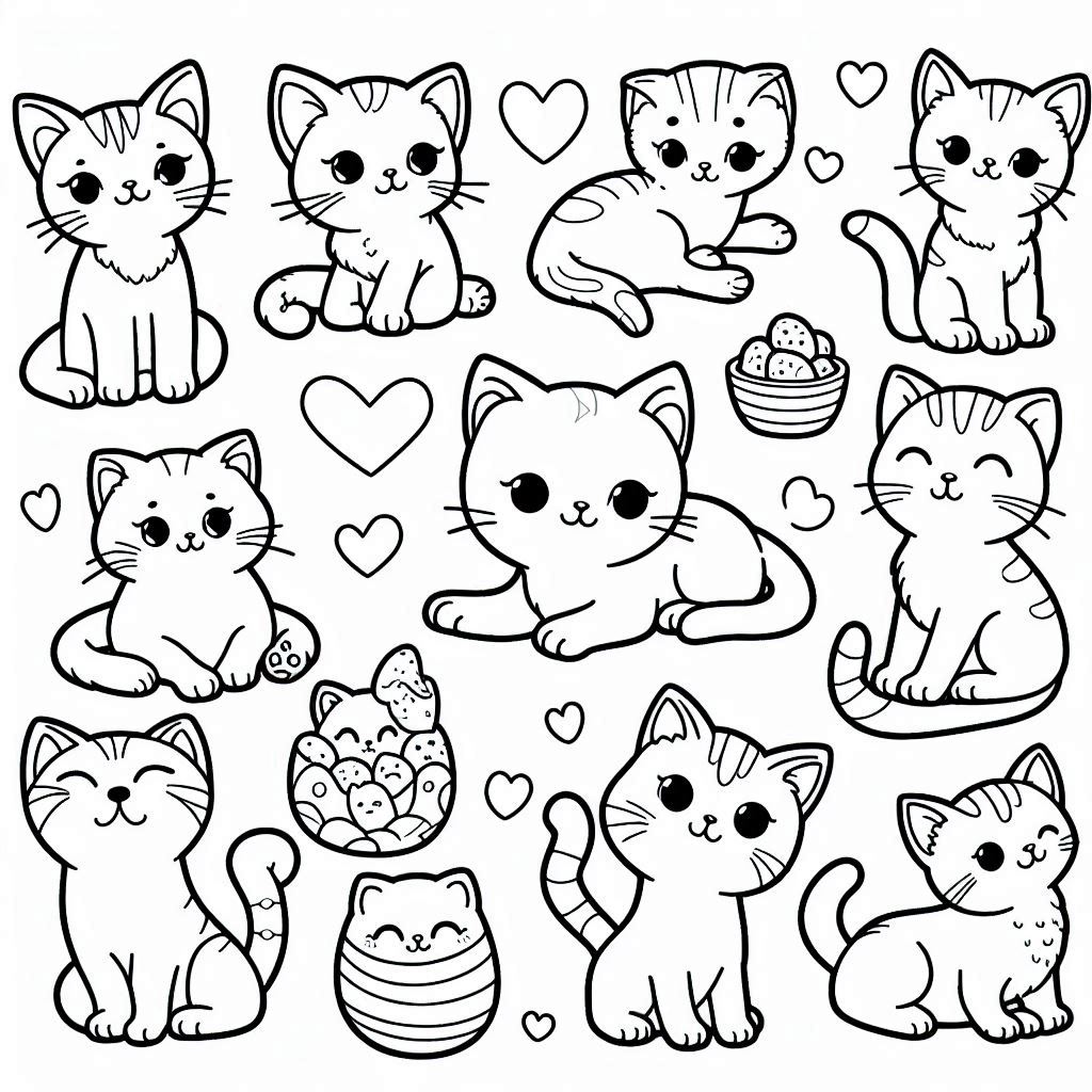 ציור של חתולים גורים לצביעה, איור של חתולים גורים להדפסה לצביעה לילדים