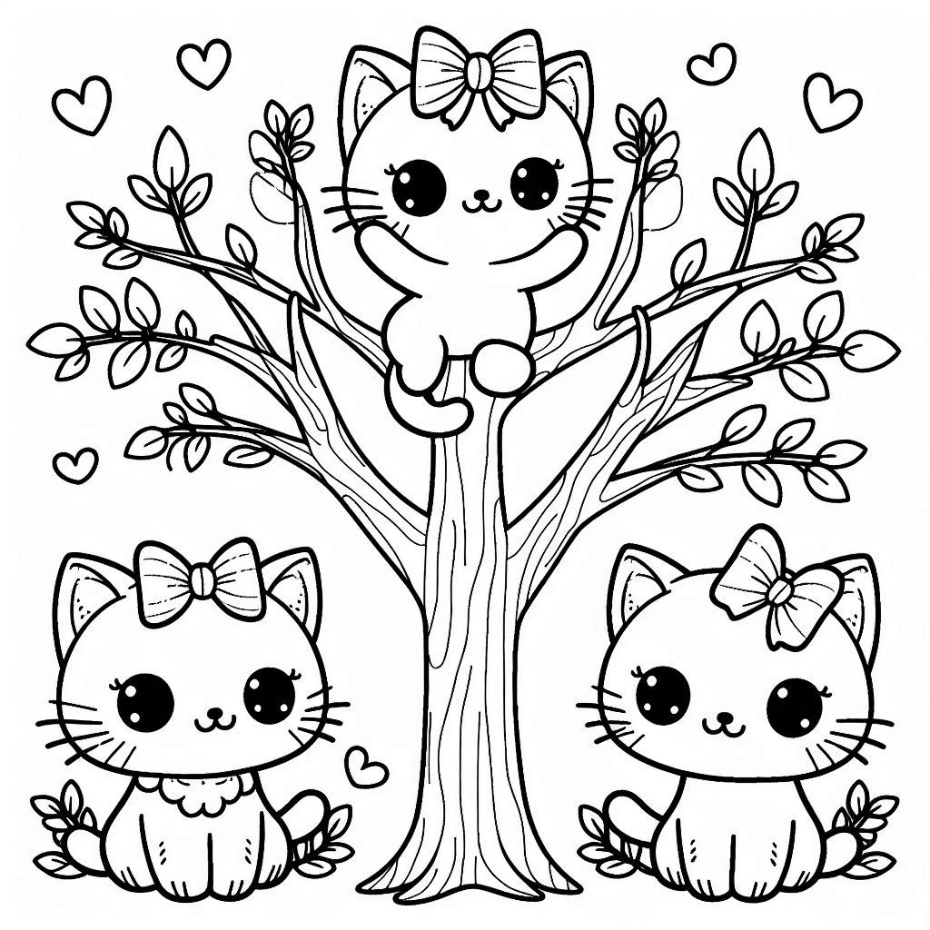 דף צביעה של חתולים בצמרת - דף צביעה של חתולים בצמרת להדפסה, ציור של חתולים בצמרת לצביעה בחינם