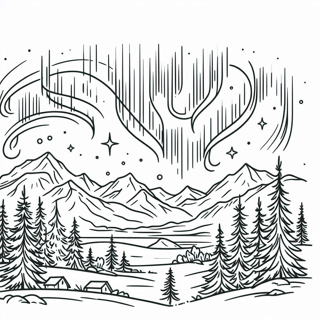 ציור של הזוהר הצפוני לצביעה, איור של הזוהר הצפוני להדפסה לצביעה לילדים