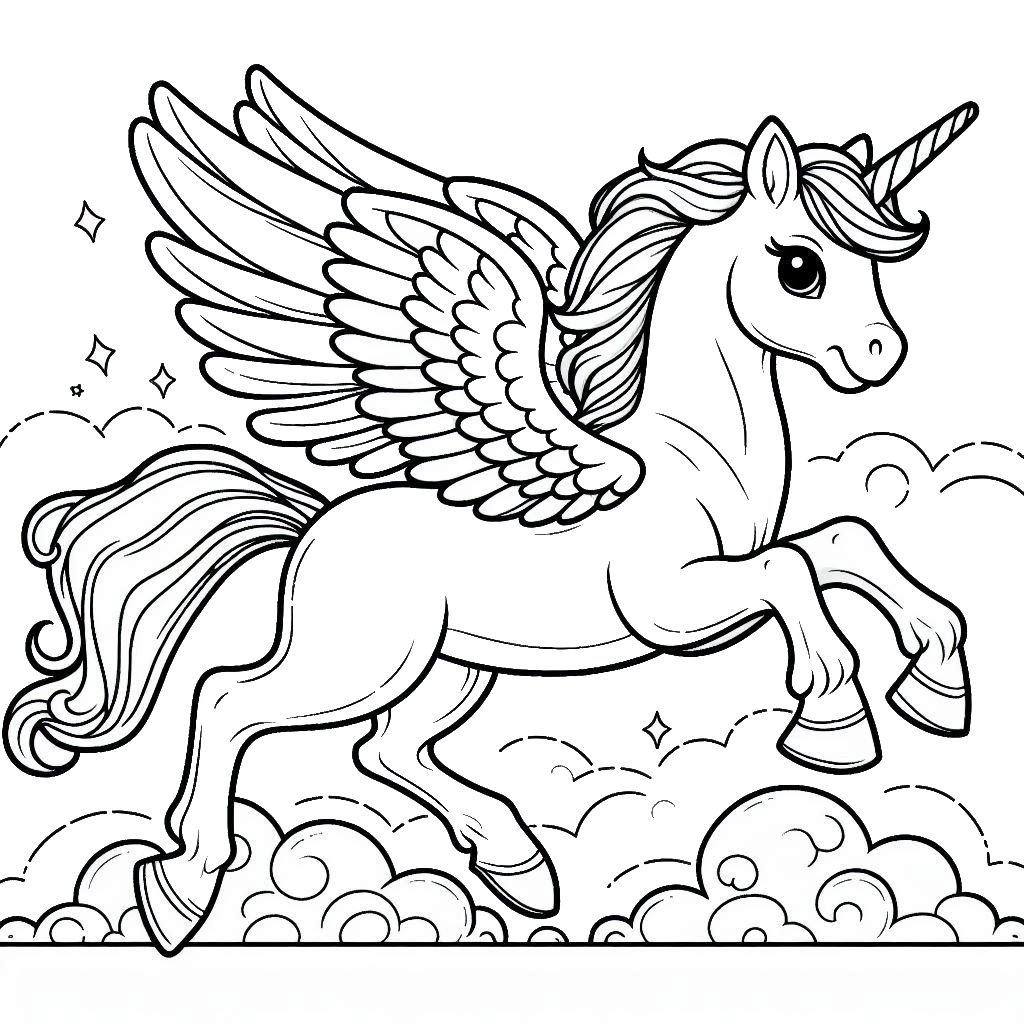 ציור של פגסוס לצביעה, איור של פגסוס להדפסה לצביעה לילדים